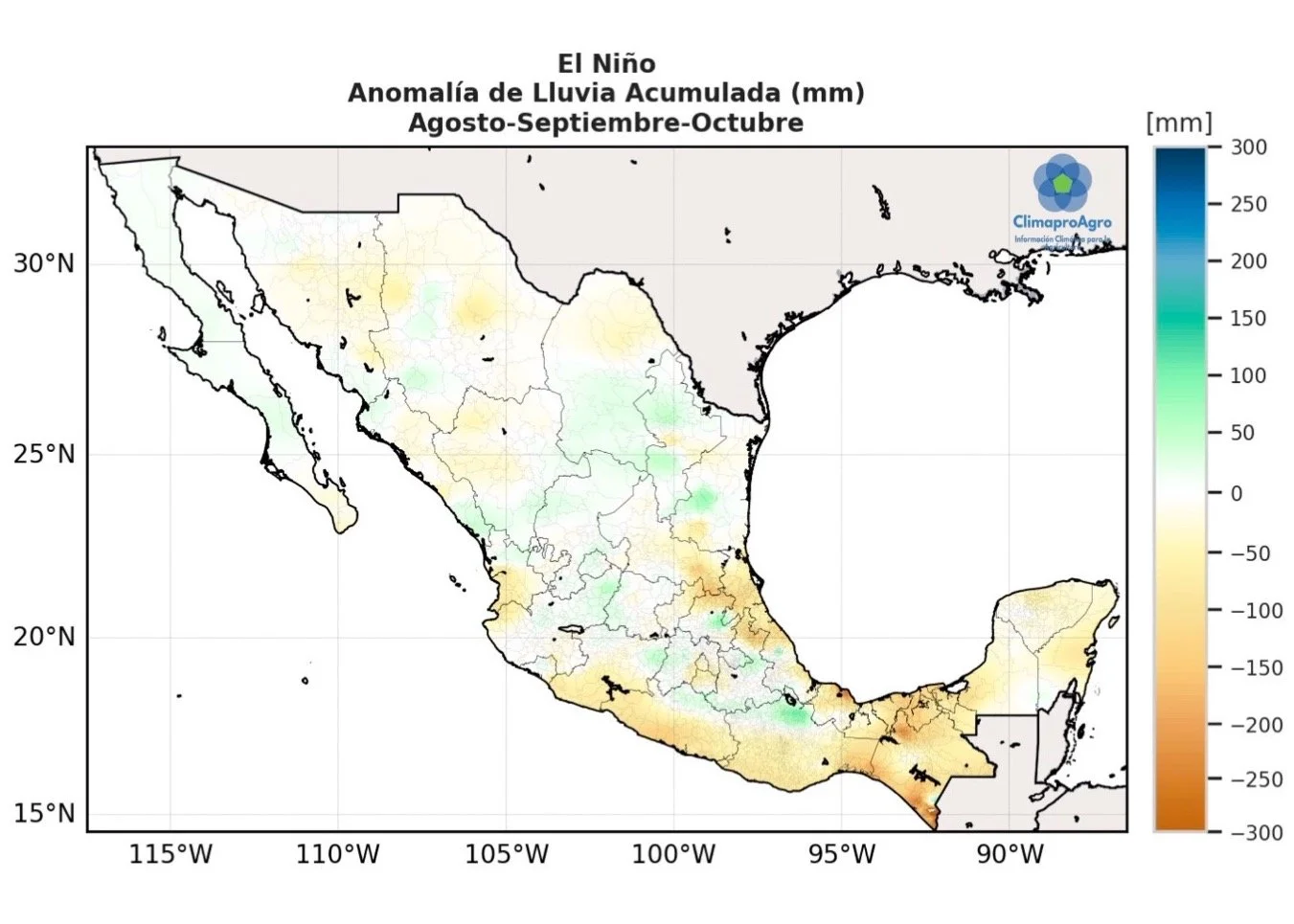 De continuar esta tendencia y aumentar la probabilidad de ocurrencia de este evento climático, la presencia de El Niño podría tener un impacto importante en el régimen de lluvias en México y como consecuencia afectar la agricultura. Es importante mantenerse informado de la evolución que este evento de El Niño pueda tomar en los próximos meses para tomar las medidas de prevención que sean necesarias.